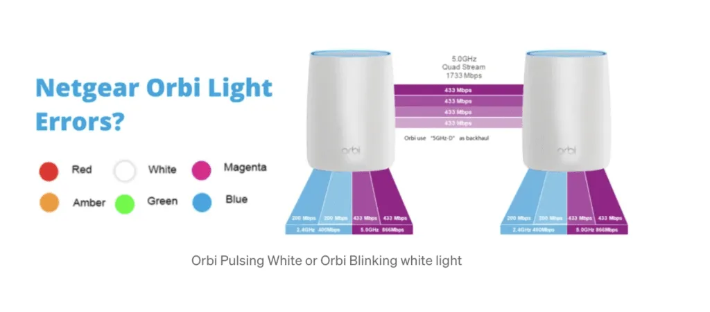 Blue: Your Orbi router and the satellite successfully synced, and the connection between the orbi and the Satellite is Set it up.